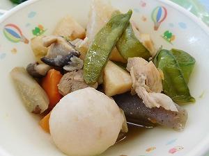 今日の献立は,「ご飯・牛乳・ごぼうサラダ・いわしのカリカリフライ・たぬき汁・果汁グミ」でした。ただし,果汁グミは,製造が終了したらしいということで,大豆の「豆粒ころころ」に変更になっていました。栄養満点のメニュー(栄養のバランス表参照)に,感激です。今日もおいしくいただきました。ごちそうさまでした。たぬき汁け:古くはタヌキの肉を入れた味噌汁であったが、獣肉食が禁止されていた仏僧によって、タヌキの代わりに凍りコンニャクをちぎって胡麻油で炒り、そこに良く擦ったおからを加え味噌汁にすると、味がそっくりになることから、これが精進料理として広まった。(出典:ウィキペディア)