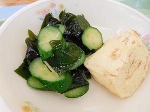 今回は、出張や会議等の都合で、2日分まとめての紹介になります。14日の献立は、「ご飯・牛乳・厚焼き卵・キュウリの香り漬・筑前煮」でした。この日は、学校公開日ということで、たくさんの参観者の方々に来校していただきました。学校評議員会も開催され、評議員の方々も児童と一緒に給食をいただきました。15日の献立は、「米粉パン・牛乳・かんぴょうサラダ・県産ハンバーグオニオンソースがけ・にらのピリ辛スープ・県民の日ゼリー」でした。明治6年に、宇都宮県と栃木県が合併して現在の「栃木県」ができた日です。2日とも、とてもおいしくいただきました。ごちそうさまでした。