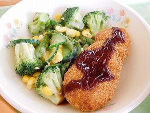 今日の献立は,「コッペパン・マーシャルビーンズ・牛乳・豚肉コロッケ・じゃこサラダ・餃子スープ」でした。「じゃこサラダ」は,食感と味が新鮮に感じられ,とてもおいしくいただきました。餃子スープの,「にら」もいつも通り,おいしかったですね。いろいろな味を楽しめた,給食のメニューでした。ごちそうさまでした。