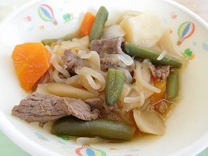 今回は,「ブラウンシチュー」を取り上げてみましょう。ブラウンシチューは,牛肉などを油脂で表面が色づくまで焼いてから野菜などを加えていため,赤ブドウ酒,トマトピュレなどを加えただし汁で煮込むもので,ウシのばら肉を使うビーフシチューやしっぽを使うオックステールシチューが代表的なものである。(出典:コトバンク)ということですが,小学校での給食は・・・・たぶん,ちょっと違うでしょうね。