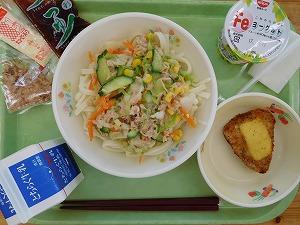 今日の献立は,「大盛りサラダうどん・牛乳・肉団子・冷凍みかん」でした。まだまだ夏ですからね。とてもうれしい,メニューでした。8月もあと3日で終わります。9月1日からは,運動会の練習が始まります。16日(土)が,「運動会」本番です。今からとても楽しみですね。