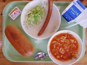 今日の献立は,「セルフドック・牛乳・ミネストローネスープ」でした。ミネストローネスープは,私の大好物です。セルフドックとともに,おいしくいただきました。今日は,もう少しで1学期が終了することから,学期末の授業参観と家庭教育学級,学年懇談会が予定されています。今回の参観授業は,今週が「人権週間」ということもあって,全学級で,「道徳」の授業を実施しました。道徳的価値の追求・把握に向けて授業が展開されました。参観された保護者の皆さんは,どう御覧になったでしょうか!?今後も,子ども主体の授業づくりをめざして取り組んでいきます。