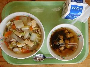 今日の献立は,「ご飯・牛乳・豚肉の生姜炒め・豆腐入り中華スープ」でした。今日も,おいしくいただきました。ごちそうさまでした。いつも,バランスのとれたメニューの提供をありがとうございます。給食は,元気の源・健康の源ですね。今日も,一日がんばります。
