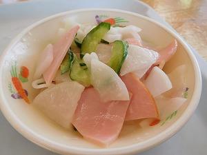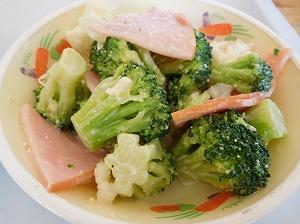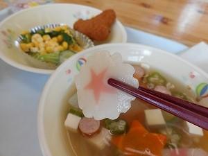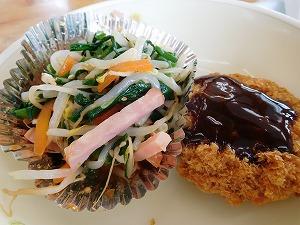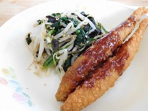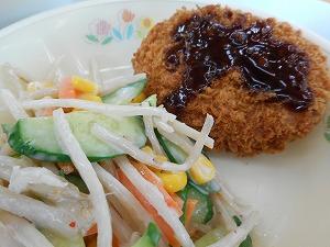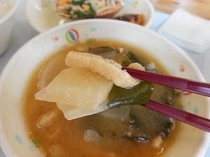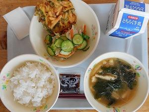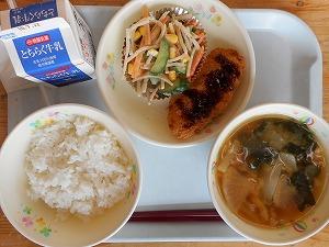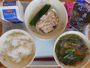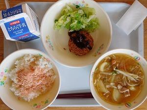 今日の献立は,「ご飯・牛乳・メンチカツ・ハムとニラの和え物・むらくも汁」でした。特に,ハムとニラが合うことがわかりました。ニラは,大渡産ですから,地産地消そのものです。とてもおいしいニラです。今日も完食,ごちそうさまでした。