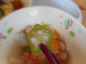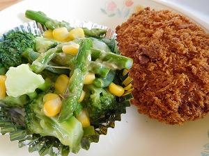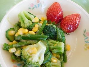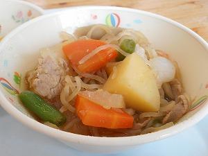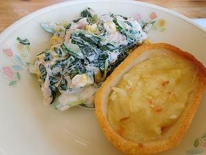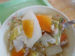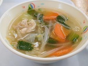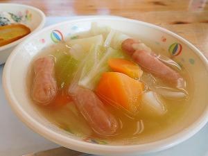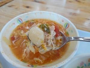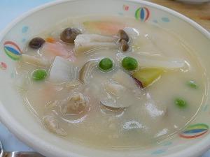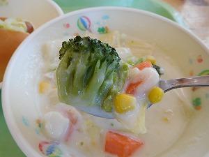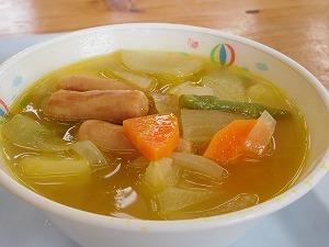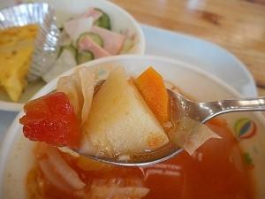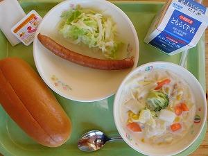 今日の献立は、「ミルクパン・チキンのオーブン焼き・牛乳・グリーンサラダ・野菜のカレースープ煮」でした。「野菜のカレースープ煮」は、『私の好きな料理100選』に入ります。とにかく、おいしくいただきました。ミルクパンとの相性もいいですね。もちろん完食です。ごちそうさまでした。
