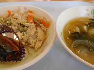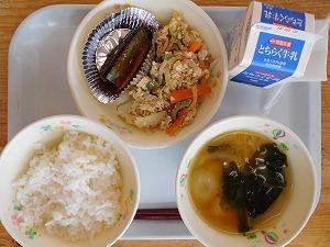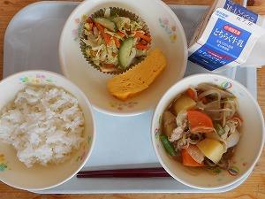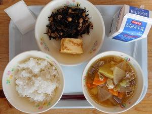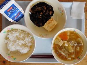 今日の献立は,「ご飯・牛乳・厚焼き卵・ひじきの炒め煮・さつま汁」でした。もちろん完食,おいしくいただきました。