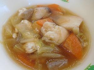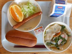 今日の献立は,「コッペパン・牛乳・白身魚フライ・ボイルキャベツ・五目ワンタンスープ」でした。朝から寒さが応える今日に,揚げたてのフライと熱々の五目ワンタンスープは,とてもうれしい限りです。もちろん,完食,ごちそうさまでした。温まったからだと心で,午後もがんばります。