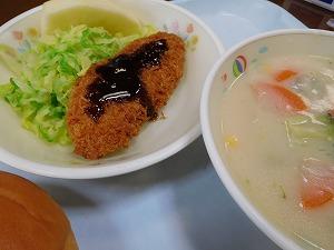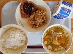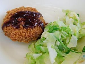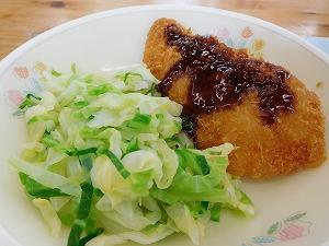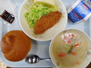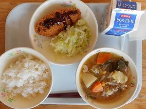 今日の献立は,「ご飯・牛乳・メンチカツ・ボイルキャベツ・どさんこ汁」でした。今日もおいしくいただきました。温かなどさんこ汁に揚げたてのメンチカツ,いい感じです。完食です。ごちそうさまでした。