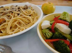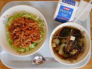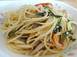 今日の献立は、臨時休業の影響で先週金曜日のメニューになっています。「大盛りニラと挽肉のピリ辛スパゲッティ・牛乳・温野菜サラダ・レモンゼリー」でした。ニラと挽肉のピリ辛スパゲッティは、『私の好きな料理100選』に入るものです。温野菜サラダとのマッチングが Good! でした。もちろん完食です。ごちそうさまでした。