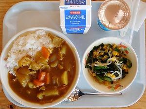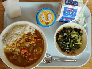 今日の献立は、「ポークカレー・ご飯・牛乳・こんにゃくサラダ・ヨーグルト」でした。連休明けの給食、おいしかったです。子供たちは、カレーが大好きな子が多く、食べ終わるのも早かったようです。もちろん、私も完食で、ごちそうさまでした。