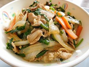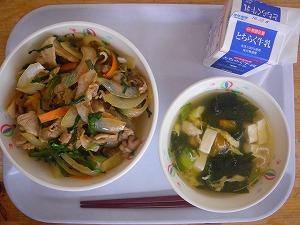 今日の献立は,「スタミナ丼・牛乳・五目みそ汁・アセロラゼリー」でした。スタミナ丼に使われていた豚肉は,「地産地消」ということです。タマネギやニラ,にんじん,ニンニク,しょうがといった,スタミナの基になる食材がたくさん入っていました。私も,しっかりと食べて,がんばろうと思います。・・・・完食です。ごちそうさまでした。