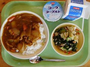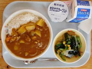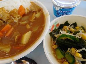 今日の献立は,「ポークカレーライス・牛乳・海藻サラダ・県産ヨーグルト」でした。今週の最後を飾るにふさわしいカレーライス,おいしくいただきました。完食です。