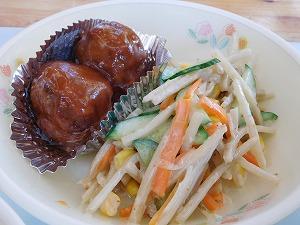 今日の献立は、「大盛り冷やし中華・牛乳・肉団子・ヨーグルト」でした。「冷やし中華」は、今シーズンの食べ収めてしょうか!? 今日も都合で子供たちと一緒にランチルームでの会食でした。楽しく、おいしくいただきました。もちろん、完食です。ごちそうさまでした。