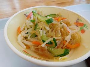 今日の献立は,「中華丼・牛乳・クラゲ和え・みかん(都合により変更)」でした。中華丼は,久しぶりのメニューでしたね。これが,クラゲ和えと相性がいいようで,おいしくいただきました。今日も完食です。「ごちそうさまでした。」