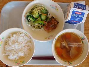 今日の献立は,「ご飯・牛乳・さばの味噌煮・白菜のおひたし・里芋と大根のそぼろ煮」でした。今日は,和食の味をかみしめながらいただきました。ごちそうさまでした。・・・・完食です。