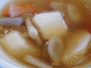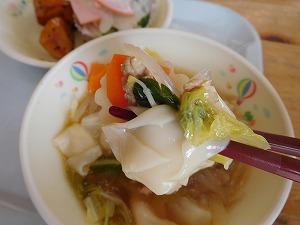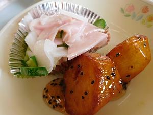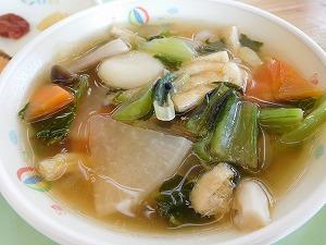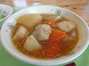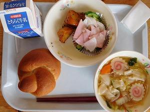 今日の献立は,「米粉パン・牛乳・大学芋・ハムと大根のサラダ・五目ワンタンスープ」でした。五目ワンタンスープで心と体が温まり,大学芋で幸せ感をいただきました。もちろん完食,ごちそうさまでした。