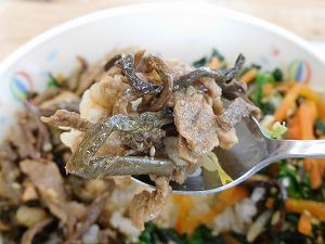 今日の献立は,「ビビンバ丼・牛乳・わかめスープ」でした。予定のプリンは,都合で後日とうことになりました。楽しみにしていた子供たち,ごめんなさい。ビビンバ丼とわかめスープ,よく合いますね。今日も完食,おいしくいただきました(運動しなくては・・・・)。