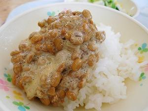 今日の献立は,「ご飯・牛乳・納豆・野菜のおひたし・肉じゃが」でした。今日は,和食を味わう時間となりました。子供たちに,「よくかんで食べましょう。」と言っているので,私ももちろんよくかんで食べました。今日も完食,やはりお腹周りが心配ですが・・・・,おいしくいただきました。