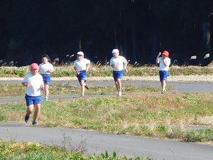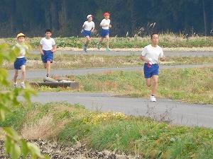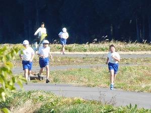 検食と同時刻に,3・4年生による持久走試走会が行われていました。こちらは,みんながんばって・・・・完走のようです。