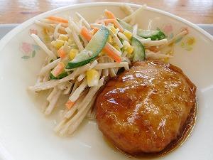今日の献立は,「コッペパン・牛乳・煮込みハンバーグ・温野菜サラダ・コンソメスープ」でした。温かな洋食をいただきました。心も穏やかになりますね。今日も完食,ごちそうさまでした。