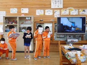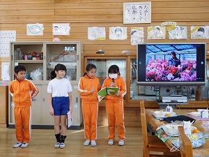 今日の献立は,「ピタパン・牛乳・チキンパテ・ごぼうサラダ・野菜スープ」でした。「このような,給食メニューも楽しいね。」という献立です。今日は,4年生の「二宮堀」校外学習でお世話になった,狐塚さんと柴田さんも御一緒に会食していただきました。3年生の学年発表もあったので,とても楽しい時間を過ごしていただくことができました。3年生の学年発表は,ベイシアバックヤード・永岡園芸・田山香業所の見学発表でした。とてもわかりやすい説明で,3年生の成長を感じました。