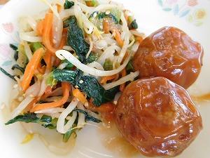 今日の献立は,「ご飯・牛乳・肉団子・ナムル・わかめと卵のスープ」でした。今日は,久しぶりにランチルームでの検食でした。やはりランチルームで撮影すると,いい感じで写真を撮ることができます。給食のおいしさが,うまく伝わるといいのですが……。