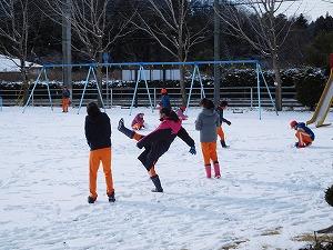校庭には,少し雪が積もっていました。業間には,子供たちが待ちかねたように校庭に出て,思い思いに遊んでいました。その様子も,少し御紹介しましょう。