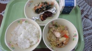 今週は地産地消献立週間です。さつまいもは2年生が生活科で収穫した物を,ニラは地域の方から格安で提供していただいている物を使っています。アイスにはちょっと寒かったようですが,とちおとめも栃木県産です。