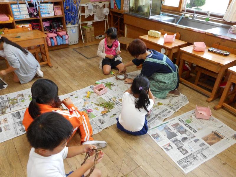 9月21日(金)に1年生が生活科の時間に、リースづくりを実施しました。