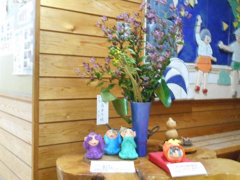 アガパンサスを校長室に飾り、校長先生が作成しているランプシェードと一緒に