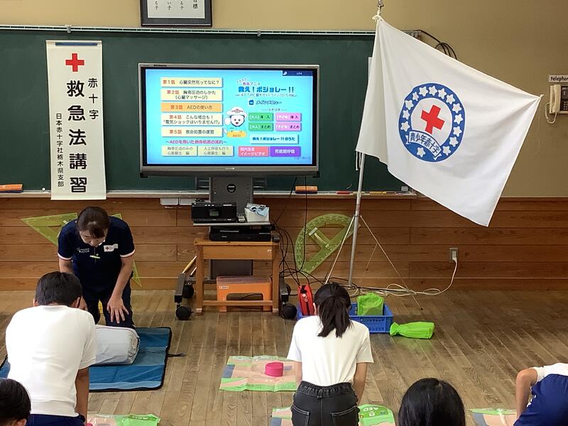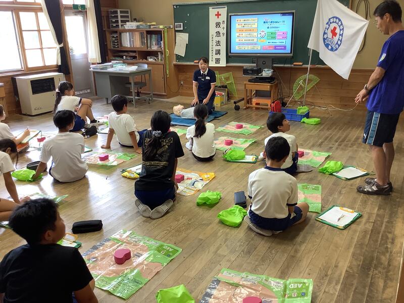 講師として、赤十字から指導員の方が来てくださり、児童生徒のための短時間プログラムとして、講話実践をしていただき、丁寧に分かりやすく教えていただき有り難かったです。ありがとうございました。