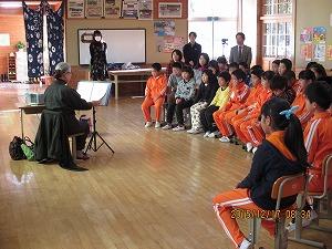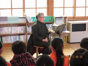 町谷にお住まいの萬徳先生が、「おこん浄瑠璃」を読み聞かせに来てくださいました。毎年、BGMつきで臨場感たっぷりに読んでくださいます。今日も4~6年生41名が、時間を忘れ聞き入っていました。萬徳先生が声色を変え、お一人で何役もこなします。何度聞いても、胸がじーんとする話です。心温まる時間となりました。先生、ありがとうございました。