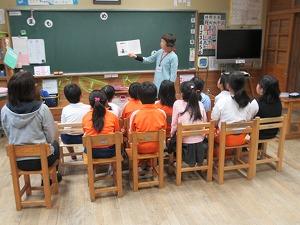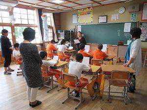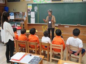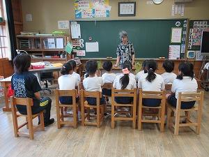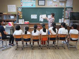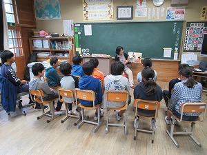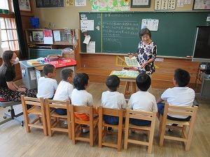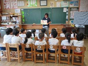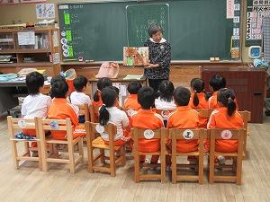 1学期最後の読み聞かせがあり、石川誓一さん、福田智美さん、柴田節子さん、山﨑久子さん、渡邉あかねさんの5人が来てくださいました。