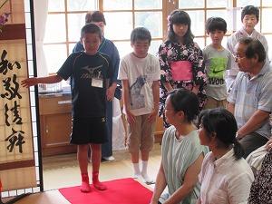6年生たちが「茶道発表会」を行いました。萬徳宗正先生をはじめ、福田正代さん、渡辺千代子さん、八木澤妙子さん、福田登美子さん、平野敏枝さんに約2週間御指導いただいた成果を保護者の方や敬老会の皆さんに披露しました。6年生たちの美しい所作に、保護者の皆さんも感激でした!6年生たちの心にはきっと「和敬清寂」の精神が宿ったことでしょう。御指導いただいた皆様、ありがとうございました。