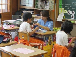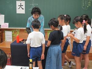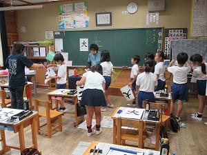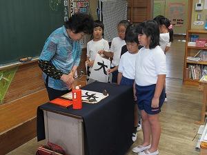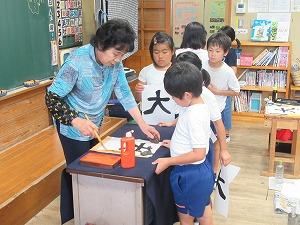 3年生の習字の学習支援に石井澄子先生が来てくださいました。4月から習字の学習に取り組んでいる3年生たち。石井先生の的確な御指導により、とても上手に「大」の文字を書くことができました!