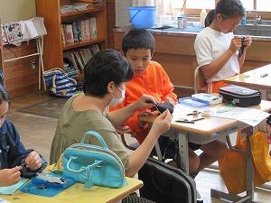 5年生家庭科の学習支援のため、渡邊恵さんと福田智佳子さんが来校してくださいました。かがり縫いと玉結び、玉どめに挑戦した5年生たち。お二人の支援によって、素敵なティッシュケースが出来上がりました。