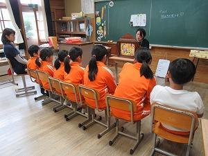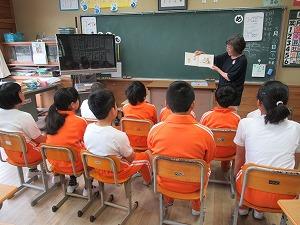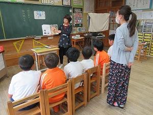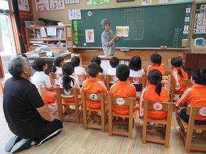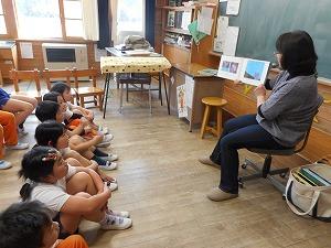 5月2回目の読み聞かせがあり、石川誓一さん、福田正代さん、柴田節子さん、山﨑久子さん、渡邉あかねさんの5人が来てくださいました。今週は学校でも、「本を読もう週間」として本に親しむ1週間となっています。皆さんの上手な読み聞かせに、本への興味がますまず高まる時間となりました。