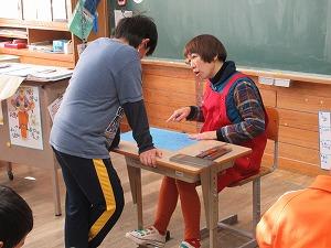 4年生の図工の授業に、渡邉あかねさんが来校され、木版画の彫りの指導をしてくださいました。渡邉あかねさんの分かりやすい指導で、子供たちはスムースに彫りを進めることができました。