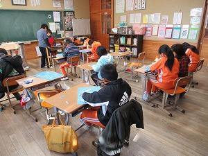 読み聞かせボランティアの石川誓一さんが来校し、卒業を間近にした6年生たちに自作の詩を贈ってくださいました。12名の6年生は、石川さんからの心のこもった詩を読みながら、中学校への決意を新たにしていました。
