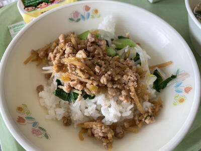 給食用にスパイスを控えめに、食べやすい味付けのルーロー飯でした。