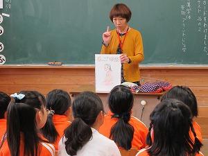石井澄子先生が、3年生と4年生の毛筆の学習を教えに来てくださいました。3年生は今学期2度目となります。4年生は昨年度以来久しぶりに御指導いただきました。子供たちは、石井先生の的確なアドバイスのおかげで、納得のいく作品づくりができたようです。また、2学期もお世話になります!