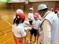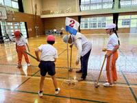 雨のため、急遽、校庭から体育館に場所が変更になりました。そのため、ボールが転がりやすく、打ち方が難しくなってしまいました。それでも、楽しんで取り組むことができて、ありがたい体験になりました。