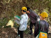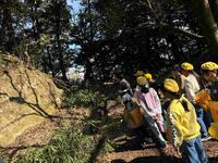 最初に八幡山公園の地層を観察しながら、大地のつくりやでき方を学習しました。