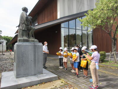 9/19(金)に、4年生が総合的な学習の時間の校外学習として、二宮尊徳記念館と報徳二宮神社に行ってきました。二宮尊徳記念館学芸員の齋藤さんにガイドをしていただきました。丁寧で分かりやすい説明で、子どもたちも二宮尊徳について学びが深まりました。ありがとうございました。