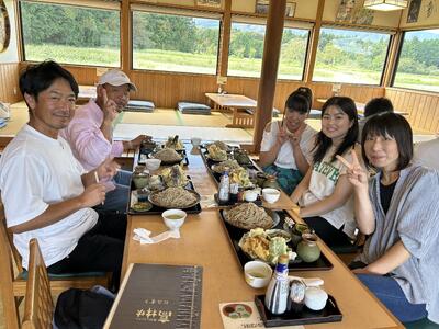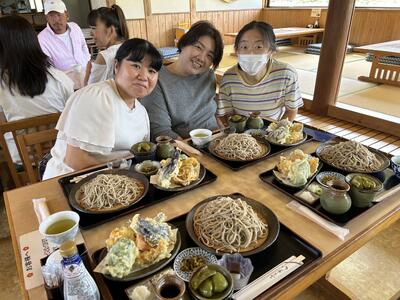 研修は、はじめに大田原市の資生堂那須工場の見学、次に、農村レストラン・ファーム高林坊でのそば打ち体験でした。9名参加で和気藹々と楽しい研修旅行となったようです。