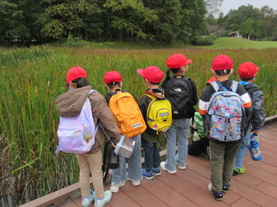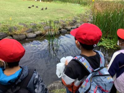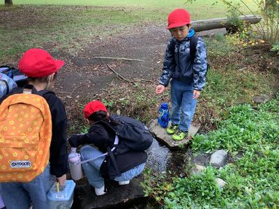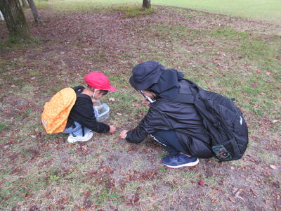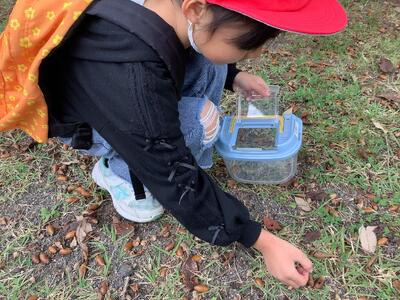 五感を駆使して秋の特徴を見付けたり、秋の自然の不思議さや面白さを感じたりして、秋の自然の様子や特徴、季節の移り変わりに気付くことができたようです。生き物もたくさん見付けることができました!