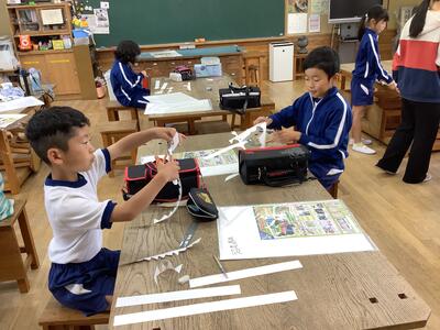 10/29(水)に、渡邉あかねさんが図工ボランティアに来てくださいました。今回も3・4校時に3年図画工作のステンシル版画をご指導してくださいました。それぞれがパステルカラーでデザインした枠の中に、自分の好きなキャラクターをはさみで切ってのせて、それぞれの個性が生き生きした作品に仕上がってきました。ご指導ありがとうございます。