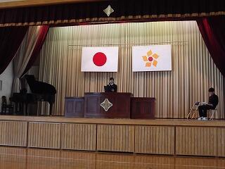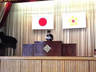 実行委員長のあいさつ、校長のあいさつのあとは、少年の主張や平和学習、英語スピーチの発表が行われました。