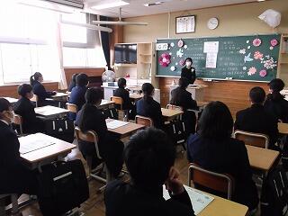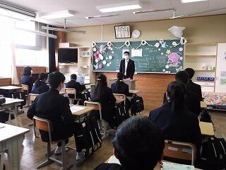 式の後は、教室に戻って学級活動です。それぞれの担任からお話をいただきました。