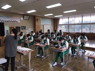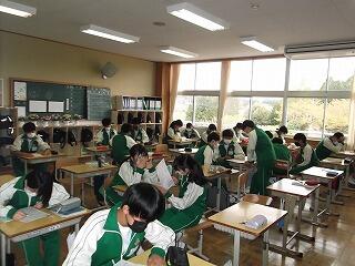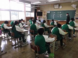 3年1組は、理科のテストに向け、自習です。2組は音楽の授業に取り組んでいました。